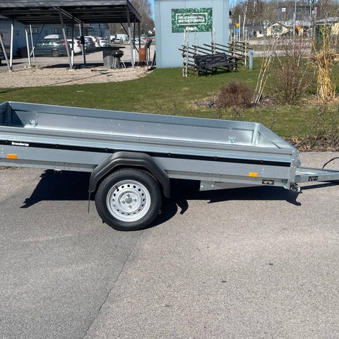 En liten mångsidig släpvagn lämplig för allt från camping och fritid till flyttning av trädgårdsavfall och gods. Denna trailer har en V-formad dragstång som hjälper dig att köra säkert till din destination. Släpvagnen kan enkelt förvaras stående för att spara utrymme. Den är utrustad med tipp och en hopfällbar dragstång som är utrymmesbesparande när den lagras stående. Stort tillbehörsprogram. En perfekt investering inför höstens trädgårdsarbete.