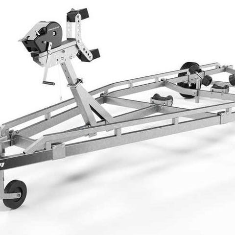 Båtupptagningsvagn för båtar upp till 24 fot. Utrustad med heavy duty superrullsvagga, justerbara förstärkta kölrullar och sidorullar av X-line-kvalitet för enkel anpassning till din båt. Varmgalvaniserat chassi för lång hållbarhet. Vinsch och vinschtorn som är enkelt att justera, vinschtornet är även utrustat med en extra säkerhetsvajer för användning vid transport. Båttrailern på bilden kan vara extrautrustad.