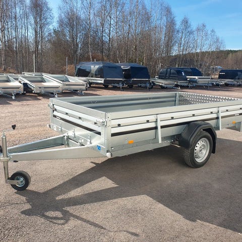 Denna släpvagn är perfekt för transport av bland annat byggmaterial, möbler, trädgårdsskräp eller annat där det behövs en smidig släpvagn.