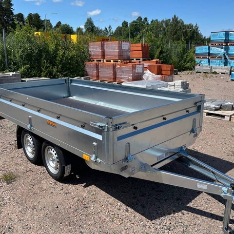 Det här släpet sätter lastytan i fokus, med sidorna borttagna lastar man med truck från alla sidor enkelt. Lämmar är i aluminium, gör att dem är otroligt lätta att lyfta av.