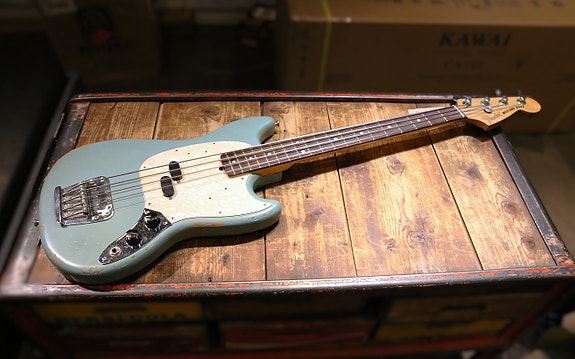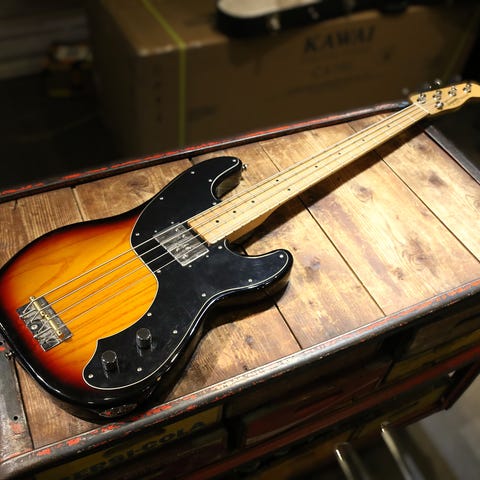 Begagnad Fender Jazz Bass från 1975 i färgen Mocka lättvikt.