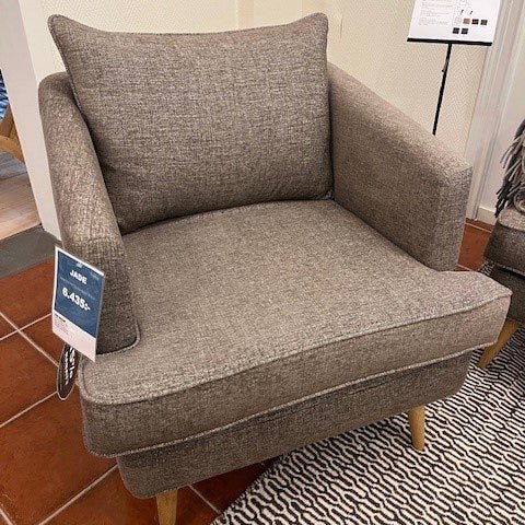 Fåtölj med måtten: Bredd 75 cm, Djup 80 cm, Höjd 81 cm.