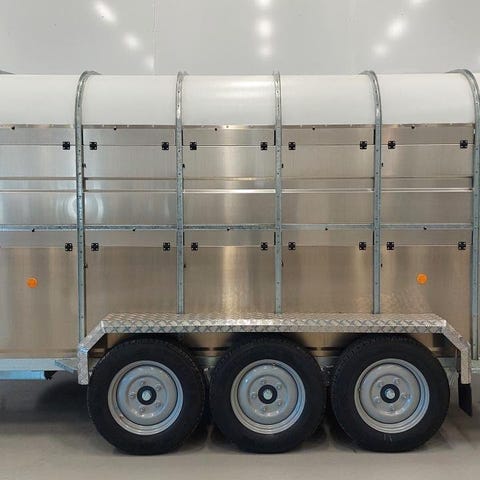 Ett smidigt boskapssläp där man enkelt kan lyfta av överdelen för att utnyttja släpet som flaksläp.