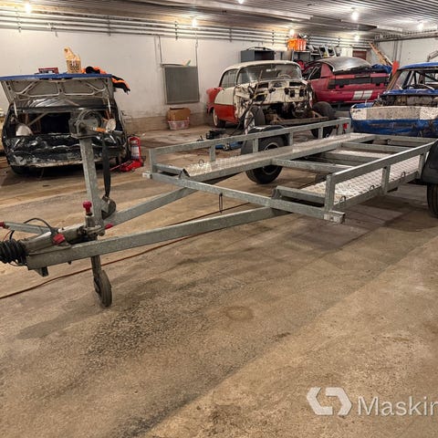 Enkelaxlad fordonstransport med helsvetsat chassi och generös storlek för transport av t.ex. personbilar.