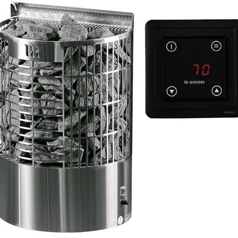 I Mondex modell Ahti kombineras stål och finsk täljsten. Detta äkta och ursprungliga täljstensaggregat värms upp i sin helhet och ger på så vis ett fuktig, syrerikt bastubad – varje gång!