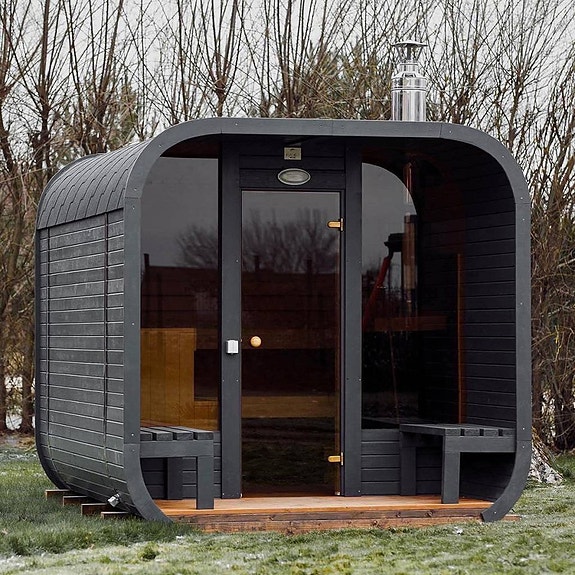 Modern och tilltalande design som ger en fantastiskt härlig rymd invändigt. Tack vare den rundade formen cirkulerar den varma luften som stiger emot taket på liknande sätt som en helt rund bastutunna men här kommer du sitta högre i bastun då formen tillåter detta.