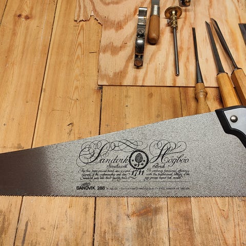 Vår traditionella dubbelkantsåg. Dubbeleggssåg har korslagda tänder på ena sidan och rivtänder på den andra. Med mycket tunt blad och kanter på slitna tänder kan du göra snitt av bra kvalitet.