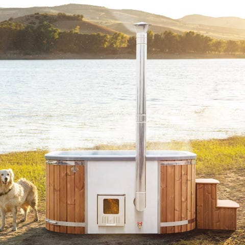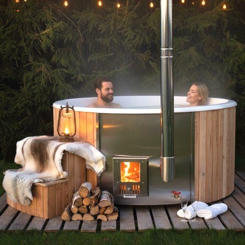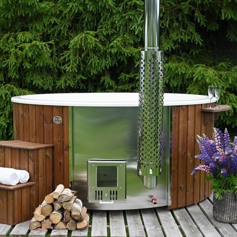 Vedeldad badtunna Wellness deluxe med uppgraderad kamin ger nu den snabbaste uppvärmningsiden på marknaden med bara 1,5h
