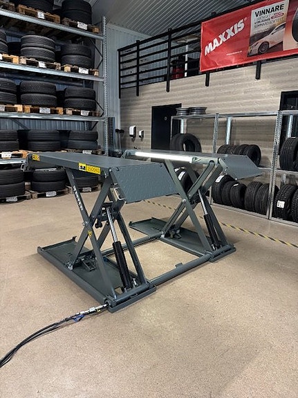 Kraftig hydraulisk verkstadspress 75 ton. Presskolven styrs genom luft med fotpedal eller så kan man kör handpumpning.