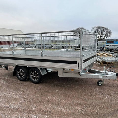 En höglastad vagn med robust konstruktion för proffsanvändare och tyngre transporter. Samtliga sidor är av aluminium och är fällbara för smidig lastning, t.ex. med gaffeltruck. De nedfällda bindöglorna på lastplattformen gör det extra smidigt att säkra lasten. Den V-formade dragstången ger optimala köregenskaper och högre säkerhet. Vagnen på bilden kan vara extrautrustad.