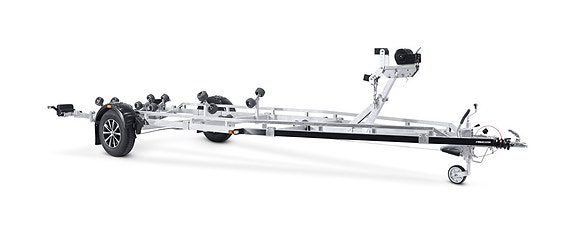 Båtupptagningsvagn för båtar upp till 24 fot. Utrustad med två förstärkta självjusterande vaggor, justerbara förstärkta kölrullar och sidorullar av X-line-kvalitet för enkel anpassning till din båt. Varmgalvaniserat chassi för lång hållbarhet. Vinsch och vinschtorn som är enkelt att justera, vinschtornet är även utrustat med en extra säkerhetsvajer för användning vid transport. Båttrailern på bilden kan vara extrautrustad.