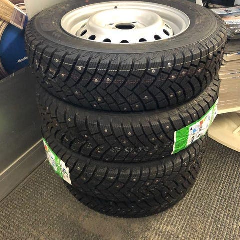 Vinterdäck, dubbade på fälg, 4-bultade, passar nästan alla släp & båttrailers, obromsade och bromsade upp till 1000 kg.