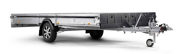 Obromsad snöskotervagn som är en utmärkt allroundvagn, med låg tyngdpunkt för högre säkerhet och stabila köregenskaper. Komplettera med en snöskoterramp som gör på- och avlastning av snöskotern enkel. Välj till skruv- eller gasfjädertipp samt stödhjul som extra tillbehör. Vagnen på bilden kan vara extrautrustad.