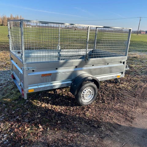 En av de absoluta favoriter bland våra obromsade vagnar är denna, som har den populära byggskivemåttet. Vagnen är tippbar, har bladfjädrar som standard och avtagbara framoch baklämmar.