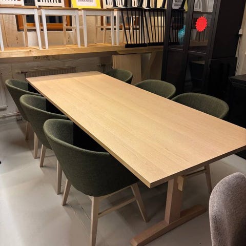 Matbordet Emmett i whitewash massiv ek,måtten är 240x95 cm