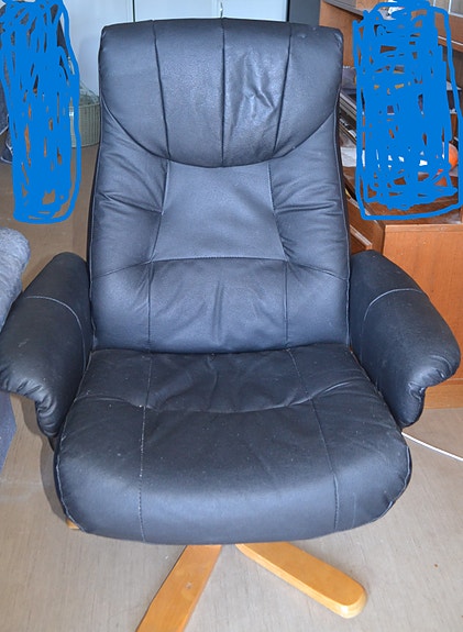 Skinnfåtölj med recliner