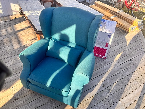 Karmfåtölj helt ny blå