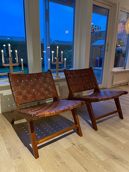 Loungefåtölj i flätat läder