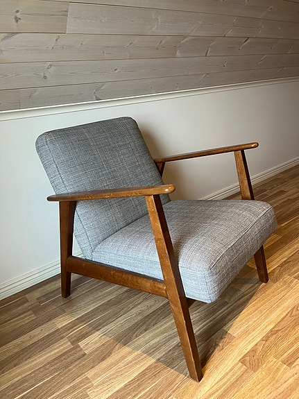 Fåtölj trä ljus klädsel