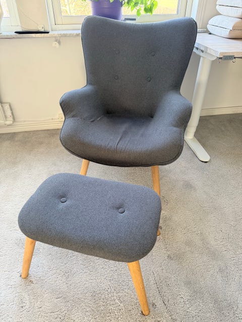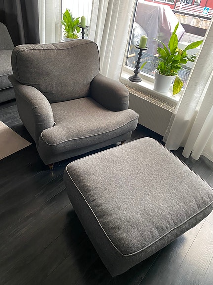 fåtölj med fotpall