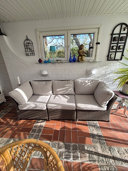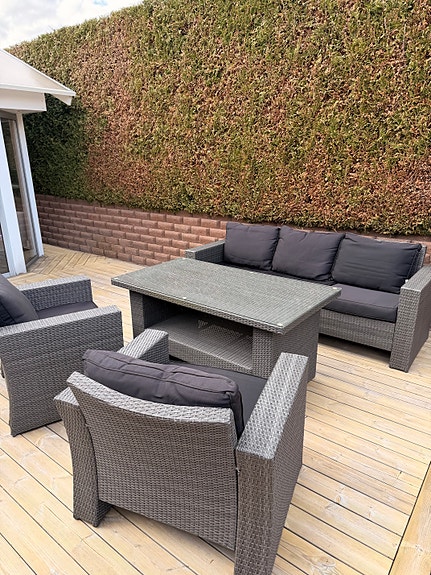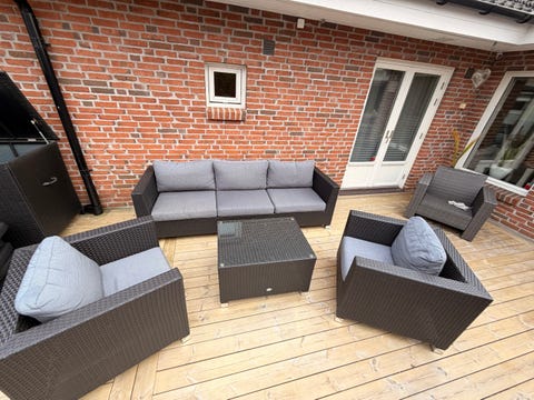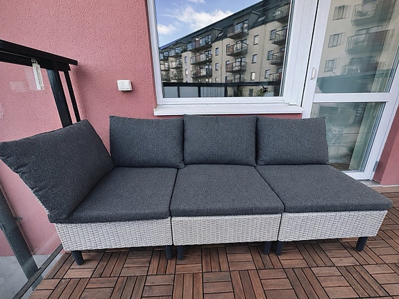 2 000 krUtegrupp med soffa, två fåtöljer och bord i konstrotting gråYstad1 timLägg till i favoriter.Öppna annons