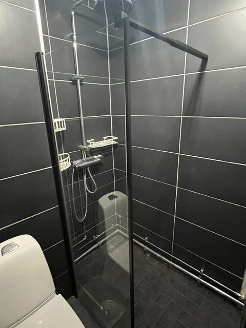 Duschvägg i grå glas