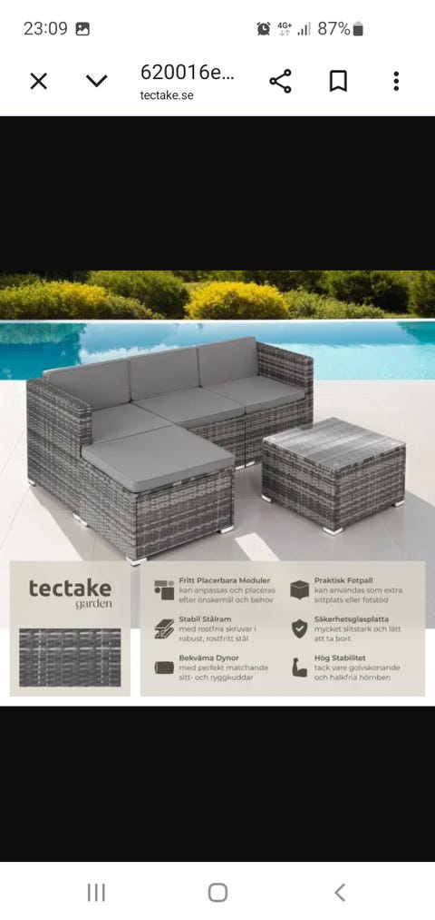 3 999 krLoungegrupp utemöbler rotting med bord och dynorHägersten1 timLägg till i favoriter.Öppna annons