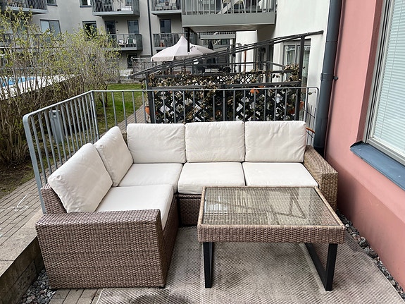 3 500 krUtemöbelgrupp konstgjord rotting med soffa, två fåtöljer och bordSollentuna13 minLägg till i favoriter.Öppna annons