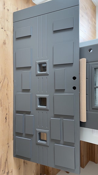 Ytterdörr grå med glasrutor