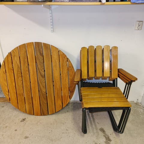 1 550 krTrädgårdsbord runt i trä och metall, 2 st A2 fåtöljer GrythyttanMotala26 marLägg till i favoriter.Öppna annons