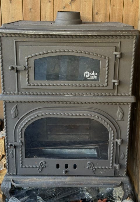 vedspis och vattenmantlad kamin