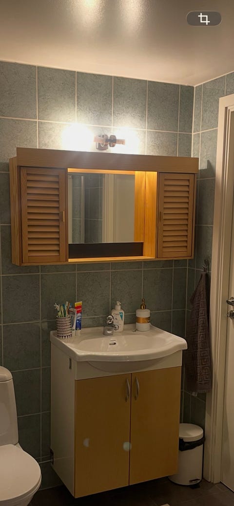 Spegel med skåp i trä