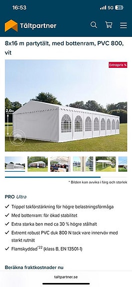 7 000 krAnvänt en gång Dancover Partytält Original 5x10 m PVC 900 vit student festStrömsnäsbruk16 marLägg till i favoriter.Öppna annons
