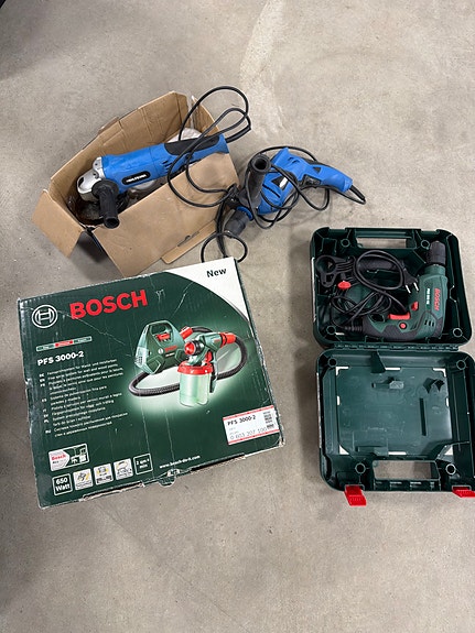100 krBosch PFS 3000-2 färgspruta och Bosch slagborr med väska samt Workman vinkelslipBro5 aprLägg till i favoriter.