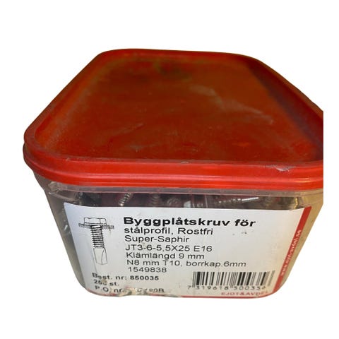 990 krByggplåtskruv 5,5x25 JT3-6 E16 Super-Saphir EJOT rostfri 250-packGöteborg6 aprKöp nuLastbil i rörelseKan skickasLägg till i favoriter.