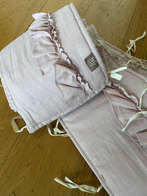 NG Baby spjälskydd rosa i linnetyg.