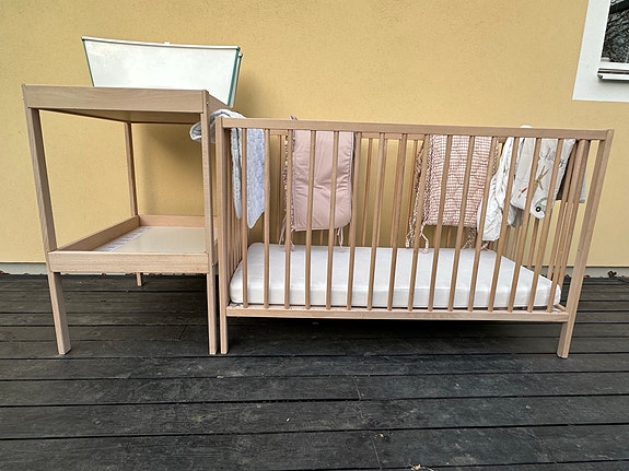 Spjälsäng med alla tillbehör