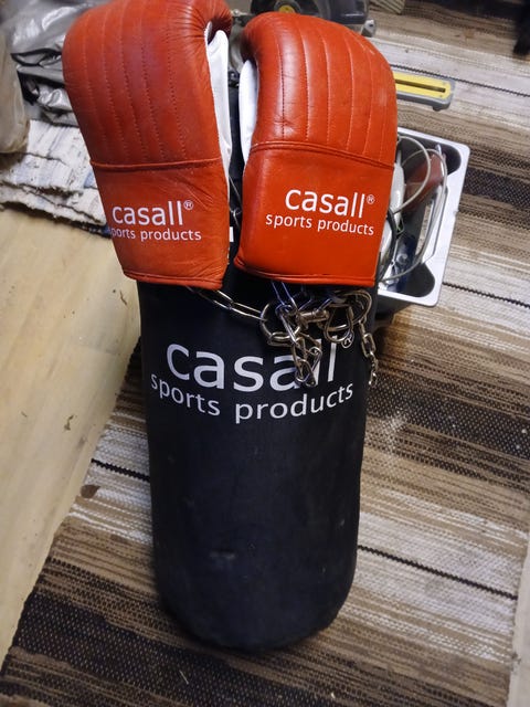 Boxningsäck med handskar