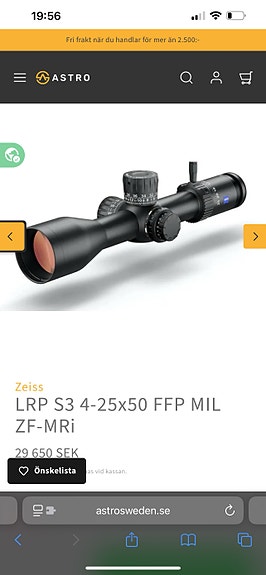 22 000 krZeiss LRP S3 4-25x50 FFP MIL kikarsikteEksjö35 minKöp nuLastbil i rörelseKan skickasLägg till i favoriter.Öppna annons