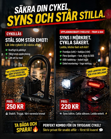 SäljesBicycle Lights Set cykelljus fram och bak USB-uppladdningsbaraGöteborg3 dagarLastbil i rörelseKan skickasLägg till i favoriter.