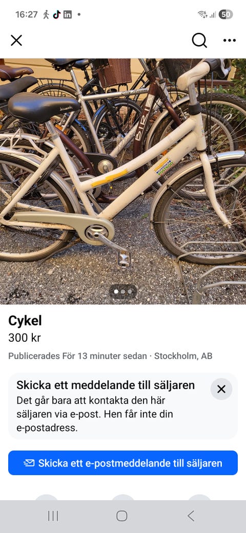 1 000 kr'Ikea' dam cykel med låda/ korgHalmstad1 dagLastbil i rörelseKan skickasLägg till i favoriter.