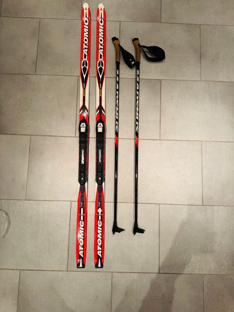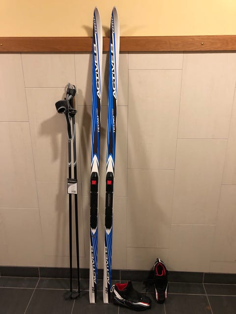 Längdskidor, pjäxor och stavar