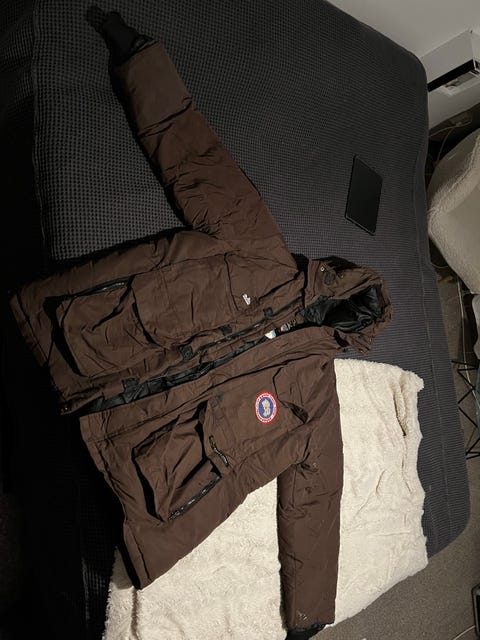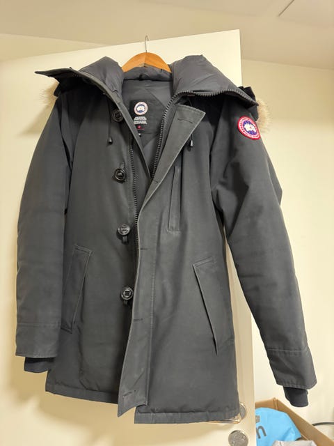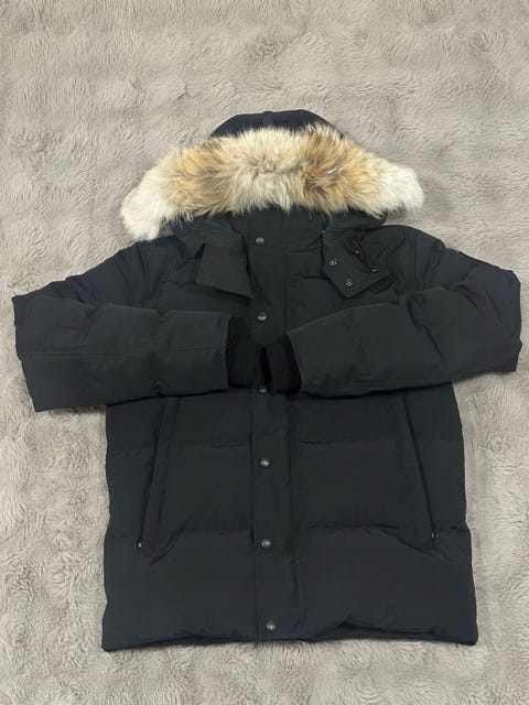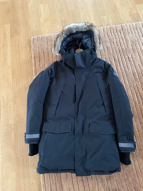 Canada Goose Shelburne parka Black Label med pälskrage i färgen Silverbirch