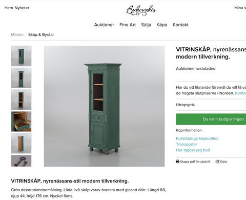 Garderob / vitrinskåp, Bukowskis