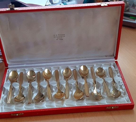 200 krRetro guldpläterade kaffeskedar i originaletui 1840-1910-tal.Älmhult19 febKöp nuLastbil i rörelseKan skickasLägg till i favoriter.