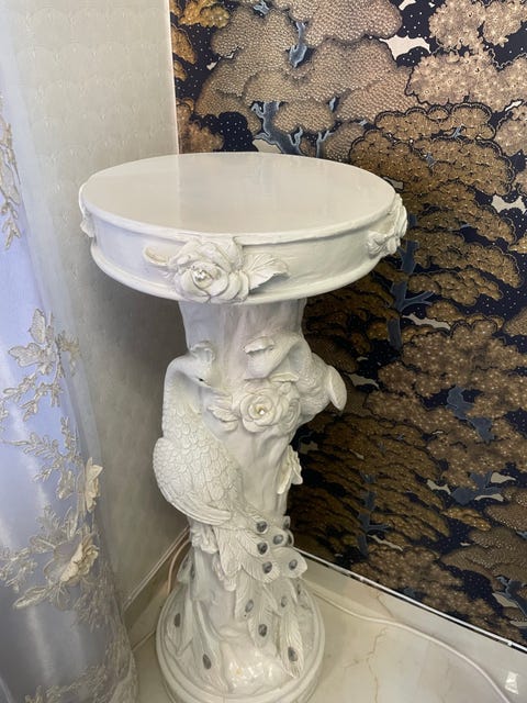 Vit piedestal med påfågelmotiv