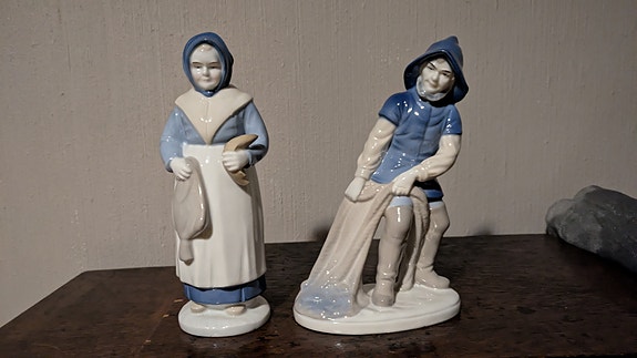 Blå vit porslin figurer