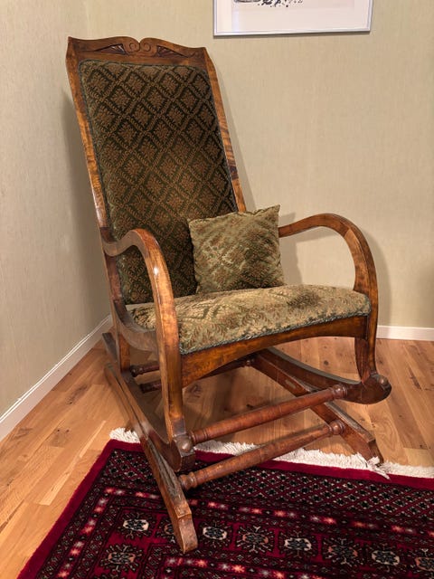 1 000 krAntik svartmålad gungstol med guldfärgade dekorativa mönsterStockholm16.12.25Lägg till i favoriter.