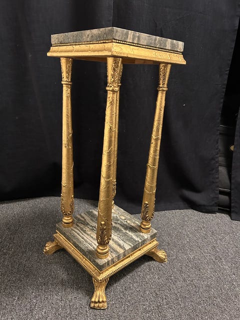 Antik pelarbord med marmorskiva