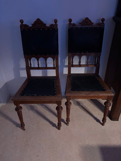 2 000 krAntika trästolar med randigt tygklädda sittdynor 2 styckenStockholm19 timLägg till i favoriter.